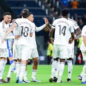 23 04月 2026 6 (外代二线)足球——西甲联赛:皇马胜阿拉维斯 4月21日,在西班牙马德里进行的2025-2026赛季西甲联赛第33轮的一场比赛中,皇家马德里队主场2比1战胜阿拉维斯队... FIFA世界杯 #足球 #西甲联赛 #欧新 #维斯 #皇家马德里 #新华社 #比赛 #球员 #皇马 #马德里 #阿拉维斯队 #姆巴佩 #皇家马德里队